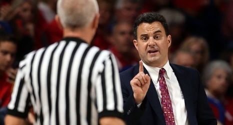 Arizona head coach Sean Miller talks with one of the officials after his team was called for a flagrant foul against Chico State in the first half of their game at McKale Center, Sunday, Nov. 8, 2015, Tucson, Ariz. Kelly Presnell / Arizona Daily Star