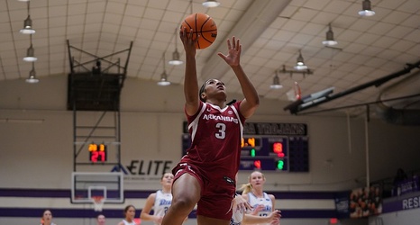 The Razorbacks led by as many as 18 and for all but 44 seconds in the wire-to-wire win. They had six players score at least nine points, led by 15 from senior guard Taleyah Jones.