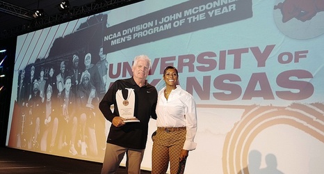 This week at the annual convention for the U.S. Track and Field & Cross Country Coaches Association near Dallas, Bucknam took the stage to accept the John McDonnell Program of the Year Award for the last time Monday. And on Thursday, Bucknam was able to experience one more thrill of victory as the Razorbacks’ head coach when former Arkansas sprinter Jordan Anthony won The Bowerman as the year’s top college track and field athlete.
