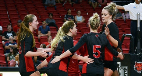 The loss for the Red Wolves (6-4) was their first home loss since Nov. 22, 2014 when the team lost a 3-0 match to Little Rock. Carlisa May led the team with 12 kills, while Brentlee Weaver added 10 on a .375 hitting percentage. Mallory Warrington registered her team-high fourth double-double with 38 assists and 12 digs and Markie Schaedig registered a team-high 23 digs.