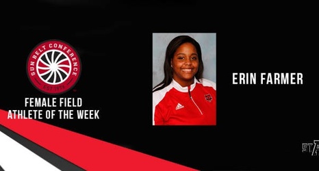 NEW ORLEANS, La (1/25/17) – Senior thrower Erin Farmer improved upon her school record in the shot put for a third-straight week and earned Sun Belt Conference Female Field Athlete of the Week honors for her efforts, the league office announced Wednesday.