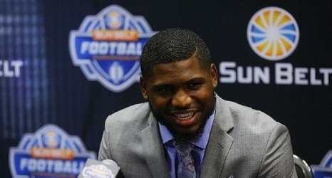 NEW ORLEANS -- A few steps away from the main stage, the newest Sun Belt Conference hardware glittered metallic gold and rested on a dimly lit platform inside the Mercedes-Benz Superdome.