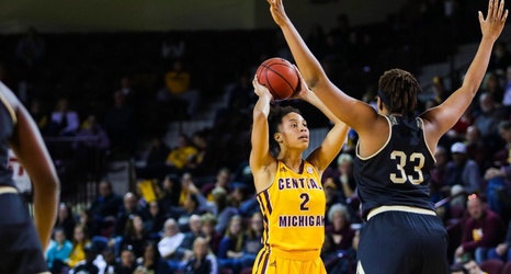 Buffalo's Stephanie Reid drove past Tinara Moore to gain a four-point lead against Central Michigan for an 85-82 win against the Mid-American Conference West Division leader.