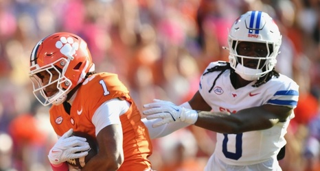 CLEMSON – The Clemson Tigers cut the SMU Mustangs’ lead to 10-7 with a 32-yard touchdown pass from quarterback Christopher Vizzina to wide receiver T.J. Moore at Memorial Stadium Saturday with 8:51 left in the second quarter.