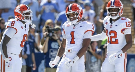 On the first play from scrimmage in Saturday’s 38-10 win over North Carolina, the Tigers called a trick play, as quarterback Cade Klubnilk threw a backwards pass to wide receiver Antonio Brown, who then threw a deep ball down the near side to T.J. Moore, who caught the perfect pass and raced 75 yards for a touchdown.