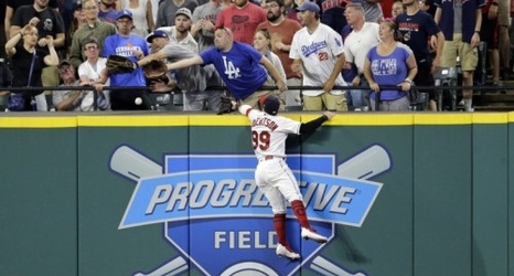 CLEVELAND: Andrew Miller escaped a crucial bases-loaded jam but later allowed his first home run since Game 7 of last year’s World Series, and the Indians lost 7-5 to the Los Angeles Dodgers on Tuesday night at Progressive Field.