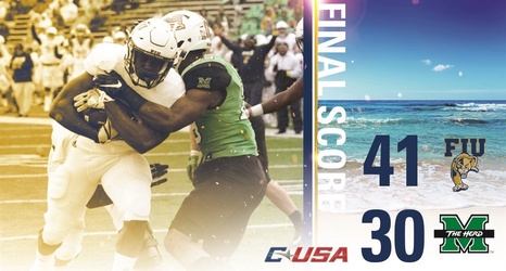 Behind a bruising rushing attack and an opportunistic defense FIU rolled past Marshall, 41-30, Saturday afternoon in Huntington, West Va. to put the Panthers one win from being bowl-eligible for the third time in the program's 16-year history.