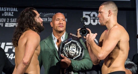 Jorge Masvidal defeated Nate Diaz in their highly anticipated BMF title bout Saturday night when a doctor called the bout after Round 3 due to cuts Diaz suffered above his right eye.