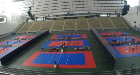 The Dome hosts many athletic events throughout the year, including football and basketball games as well as indoor track and field meets. From now until July 12 the Dome floor is split into nine separate volleyball courts.