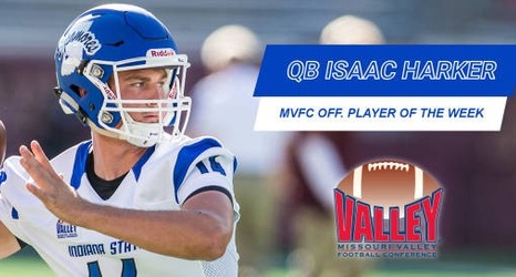 ST. LOUIS – After leading the Sycamores to a thrilling 27-24 victory over Southeast Missouri on Saturday night, sophomore quarterback Isaac Harker has been named the Missouri Valley Football Conference’s Offensive Player of the Week.