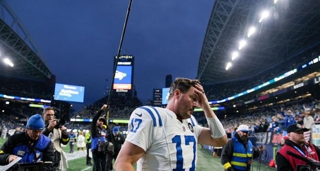 Indianapolis Colts quarterback Philip Rivers (17) leaves the field after an NFL football game against the Seattle Seahawks, Sunday, Dec. 14, 2025, in Seattle.