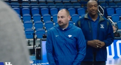 Marine veteran Matt Bradford delivered an inspirational message to the Kentucky men’s basketball team during shoot around earlier today.