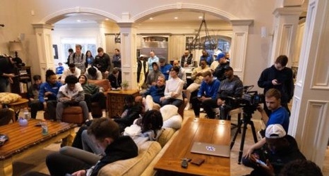 Kentucky mens basketball players and staff gathered at head coach John Calipari’s home on Sunday, March 12, 2023, to watch the Selection Sunday show. The Wildcats received the No. 6 seed, facing No. 11 Providence in the first round of the NCAA Tournament in Greensboro, North Carolina.