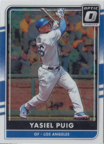 A couple of days ago Panini America debuted their newest Baseball card brand. It is called Donruss Optic, and as you can see it mimics basic Donruss design elements with chrome-style cardboard. Basically, it's Panini's version of Topps Chrome cards. Go here for a complete checklist.