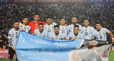 Argentina's players unfurled a giant banner in support of Sergio Aguero prior to their 2022 World Cup qualifier with Brazil on Tuesday night.