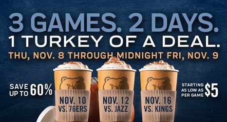 The Memphis Grizzlies today announced a Pre-Black Friday ticket promotion to tip-off the Holiday season, giving fans the option to dress up their Thanksgiving with three games for two days and one turkey of a deal.