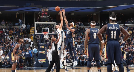 Coming off of a sizable 41-point victory against the Pelicans in their last game of the preseason, the Grizzlies looked to repeat in the home opener. Pelicans center Anthony Davis and center DeMarcus Cousins had other ideas, scoring a combined 23 of the teams 34 points in the first quarter. The Pelicans shot their best of the night from three-point range in the quarter, making six of an attempted nine.
