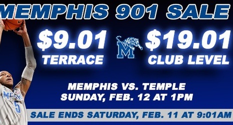 Starting at 9:01 a.m. on Wednesday, February 8 until 9:01 a.m. on Saturday, February 11, the Memphis athletic ticket office will sell terrace level single-game seats to the Temple game for just $9.01. In addition, this flash sale will include a spectacular rate of $19.01 for any available club level seats.