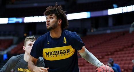 ANAHEIM, CALIFORNIA - MARCH 27: Isaiah Livers #4 of the Michigan Wolverines drives to the basket during a practice session ahead of the 2019 NCAA Men's Basketball Tournament West Regional at Honda Center on March 27, 2019 in Anaheim, California. (Photo by Yong Teck Lim/Getty Images)
