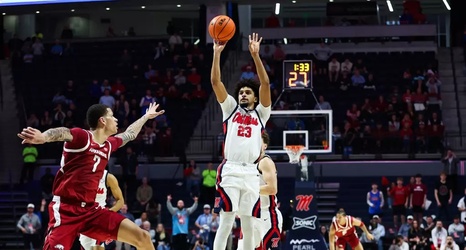 Like last game, the Rebels kept the first half tight. The Razorbacks accumulated several leads, but the Rebels caught up each time with quick spurts of scoring.