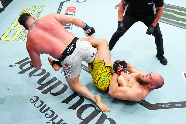 After eating a couple of stiff shots from Sutherland, Walker shot in for a takedown, pinning his opponent against the fence. From there, it was just a matter of time.