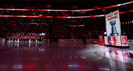 A new season for the now back-to-back Stanley Cup champions started Tuesday, with the Panthers all gazing toward the top of Amerant Bank Arena to watch another championship banner hoisted to the rafters.