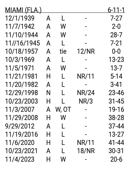Since Miami joined the ACC in 2004, NC State is 3-4 against the Hurricanes. Dave Doeren is 1-3 against Miami.