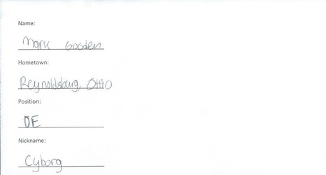 Welcome to Meet the (Blanking) Freshmen. You might know where they’re from or what position they play, but do you really know them? We decided to give these freshmen the first of many tests during their time at Northwestern, and we’ll hope to release a handful every week. Unlike in college, however, these tests aren’t graded—at least not by us. We finish up Week 2 with DE/LB Mark Gooden, a speed guy off the edge. Yes, this is his real handwriting.