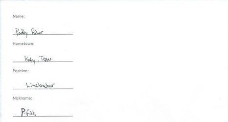 Welcome to Meet the (Blanking) Freshmen. You might know where they’re from or what position they play, but do you really know them? We decided to give these freshmen the first of many tests during their time at Northwestern, and we’ll hope to release a handful every week. Unlike in college, however, these tests aren’t graded—at least not by us. We continue the series with linebacker Paddy Fisher, high school teammate of safety Travis Whillock. Yes, this is his real handwriting.