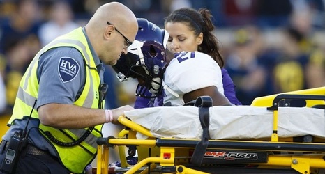 Harris, a junior, took a knee to the helmet during the second half of Northwestern's 38-0 loss at Michigan. He received extensive treatment on the field, and rode off on a cart. He did not return to the game.