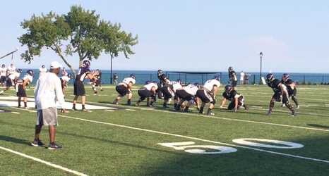 After Pat Fitzgerald’s morning press conference, we were able to see Northwestern on the field for the first time in 2016 training camp. The team wore shoulder pads but no other pads; quarterbacks wore non-contact jerseys (as per usual) and the tackling at all other positions was essentially wrapping up and hugging the ballcarriers.