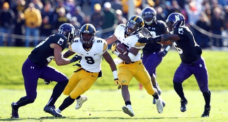Iowa running back Akrum Wadley (center) had a huge game for the Hawkeyes as they trounced No. 20 Northwestern.