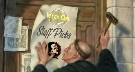 The One Foot Down staff is just as excited as all of you, and of course we have the staff picks again this year for a big handful of games from all over the country. This week we have 11 different matchups on the slate that run from Thursday night through Monday night:
