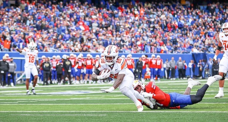 Going into the locker room, the Cowboys trailed 10-7 but outgained the Jayhawks by 49 yards, had a higher time of possession and had a better average yard per play.
