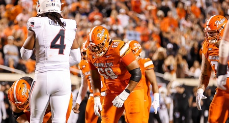 Oklahoma State left tackle Markell Samuel suffered a freak injury in the Cowboys’ hotel walkthrough ahead of their Sept. 6 matchup against Oregon. That led Mafi, a redshirt freshman, to make the move from right tackle across to left tackle to cover for Samuel, but he had to do so before having a full-fledge practice. So, with road trip roommate Matthew Wade watching along, Mafi was going through his steps in the mirror.