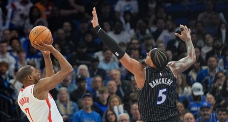 Playing in front of a national TV audience on Amazon’s Prime Video, Magic guard Desmond Bane notched 30 points, but was outdueled by Houston’s Kevin Durant, who notched 40 in the five-point win.