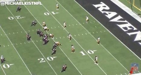 I recently came across a commonly used concept in the red zone by the Baltimore Ravens and have broken it down here to show how Wallace could be used in the Philadelphia Eagles trips formation when the field condenses.