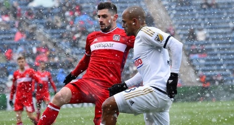 With brutal winter-like conditions pelting Toyota Park, the Union were clearly up for the match with a blistering first half display that saw much of the action in Chicago’s end. With the wind at their backs, the Union pressed high and pinned Chicago deep for much of the first 45. It resulted in a 13-2 shot advantage that saw C.