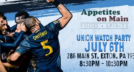 Appetites on Main is hosting a Union watch party for the team's match against Sporting Kansas City tonight. Located at 286 Main St, Exton, PA 19341, Appetites on Main will have drink specials throughout the match.