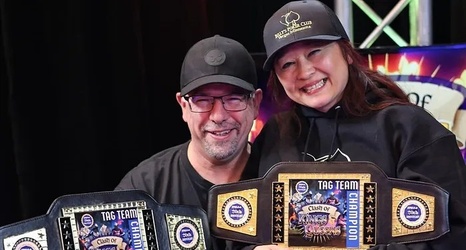 Joel Smith was in bad spirits after making yesterday's 2026 Free Poker Network (FPN) Vegas National Championship final table but failing to win a third title. But the two-time FPN champion came ready to play with his wife Nikki Smith today as the duo took down the Tag Team Championship to win $1,000 and the championship belts.