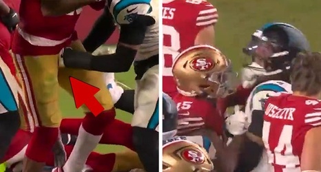 The attack below the belt went down late in the Niners' 20-9 victory over the Carolina Panthers on primetime ... when Jennings and defensive back Tre'von Moehrig were in each other's faces amid the action.