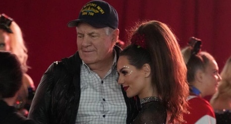TMZ Sports obtained photos of the couple looking happier than ever on Sunday. Belichick -- rocking a buttoned shirt and a Navy submarine hat -- was seen alongside Jordon, who was all dolled up in her cheerleading uniform.