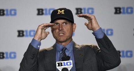 While Michigan coach Jim Harbaugh is tempting media to find a leak to identify his starting quarterback, Illinois coach Lovie Smith is comparing the NFL to college football and Wisconsin coach Paul Chryst is guarding against his players doing Lambeau Leaps.