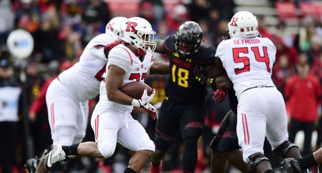 Kenneth Goins Jr. took a run 46 yards to the house for the first score. Then, on, of course, a Rutgers punt, Teldrick Morgan took the return 83 yards for another touchdown. Rutgers was down, on the road against a Big Ten team, 14-0 yet again.