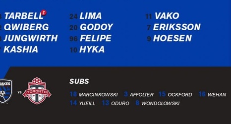 STARTING IX: Quakes vs. Toronto FC