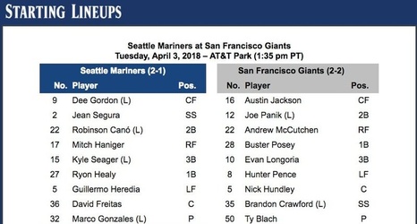 Fresh off an opening series win against Cleveland, the Mariners (2-1) hit the road for the first time to take on the San Francisco Giants (2-2) Tuesday afternoon at AT&T Park.
