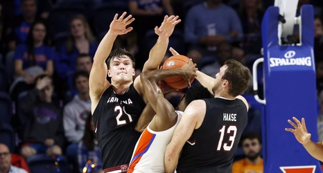 The Gators got out to a hot 11-4 start behind some early 3-point shooting, but the Gamecocks were quick to counter with a couple triples of their own, keyed in part by Hassani Gravett’s effort off the bench.
