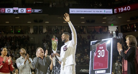 South Carolina basketball honors seniors Tre Campbell, Hassani Gravett and Chris Silva.