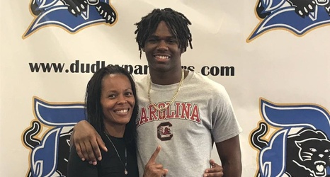 The mother of South Carolina wide receiver commit Mike Wyman delivered an emotional speech before her son committed to the Gamecocks. By