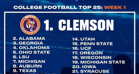 The top five stayed the same, with Clemson gathering first place honors from all but two fan sites - oddly enough, the other two representing Power Five schools in the Carolinas (US of C and UNC).